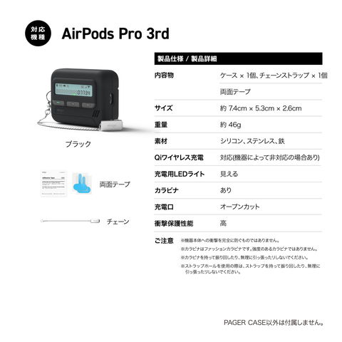 AirPods Pro3 ケース 耐衝撃 落下防止 ストラップ チェーン おしゃれ かわいい ポケベル カバー AirPods Pro 3 エアポッツプロ 第3世代 対応 elago PAGER CASE