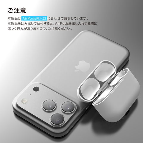 本製品はAirPods挿入口に合わせて設計しています。本製品をはみ出して貼付すると、AirPodsを出し入れする際に傷つく恐れがありますので、ご注意ください。