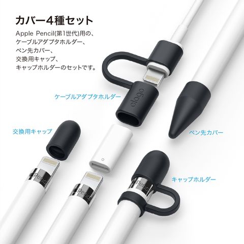 Apple Pencil 第1世代 カバー 紛失防止 落下防止 シリコン 保護 キャップ 4点set アップルペンシル ApplePencil 第一世代 MK0C2J/A 対応 elago PROTECTION SET