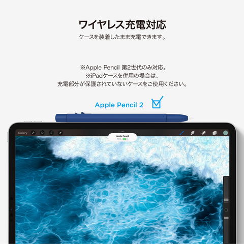 装着したまま、Apple Pencil(第2世代)全ての機能にアクセス可能です。