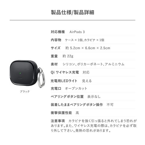 AirPods 3 3世代 ケース 耐衝撃 カラビナ 付 ハイブリッド カバー 衝撃吸収 ケースカバーAirPods 3ケース AirPods3 エアポッズ 第3世代 対応 elago EDC CASE
