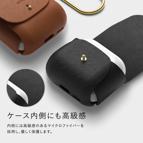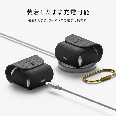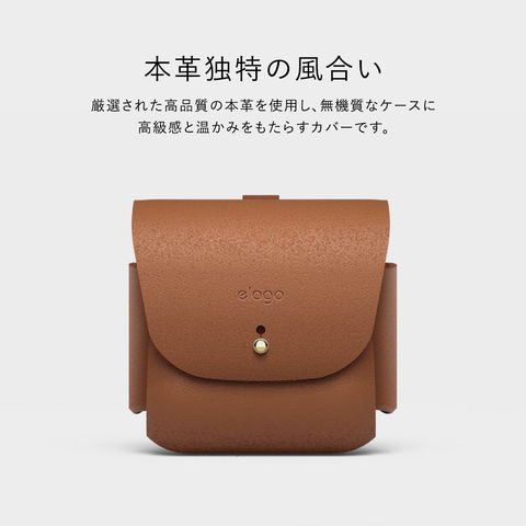 AirPods 3 3世代 ケース カラビナ 付 本革 レザー カバー シンプル 革 製 レザーケース AirPods 3ケース AirPods3 エアポッズ 第3世代 対応 elago LEATHER CASE