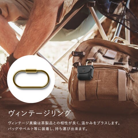 ヴィンテージ真鍮の褐色は革製品との相性が良く、温かみをプラスしてくれます。バッグやベルト等にぶら下げ、持ち運び出来ます。 ※リングを強く引っ張ると革が破けてしまう恐れがありますので、ご注意ください。