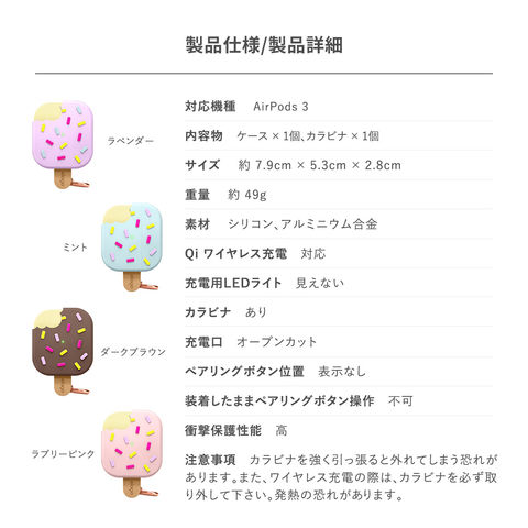 AirPods 3 3世代 ケース おしゃれ かわいい アイスクリーム カラビナ 付 シリコン カバー AirPods 3ケース AirPods3 エアポッズ 第3世代 対応 elago ICE CREAM