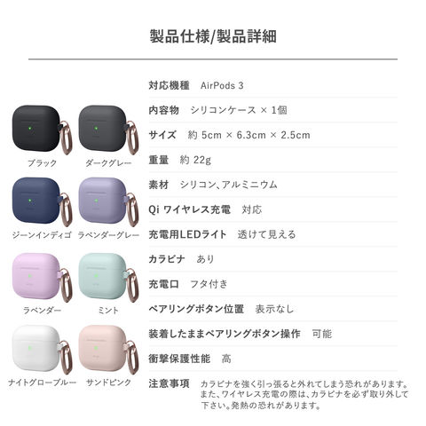 AirPods 3 3世代 ケース カラビナ 付 耐衝撃 シリコン カバー 薄型 シリコンケース AirPods 3ケース AirPods3 エアポッズ 第3世代 対応 elago ORIGINAL HANG