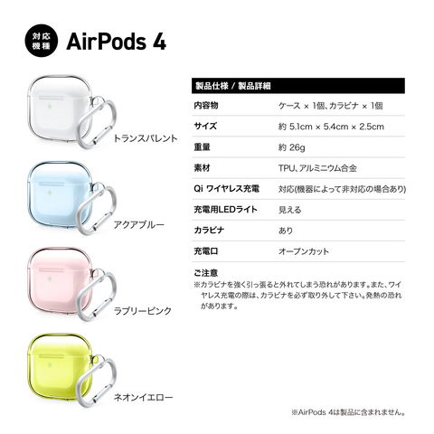 AirPods 4 ケース 透明 クリア カバー カラビナ 付き 落下防止 ワイヤレス充電 ソフト クリアケース AirPods4 エアポッツ 4 第4世代 対応 elago CLEAR HANG CASE