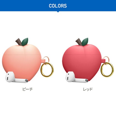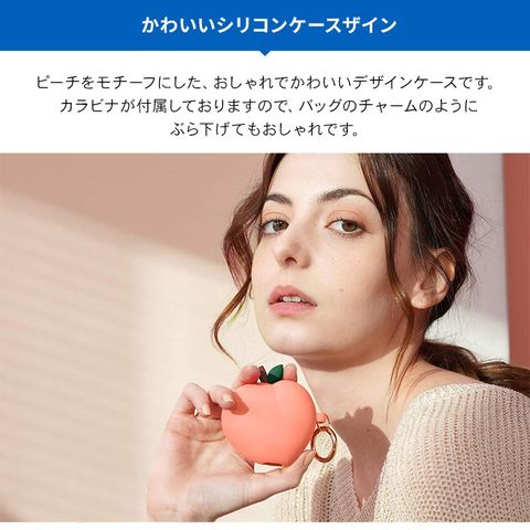 AirPods ケース おしゃれ デザイン 韓国 ブランド カラビナ 付 シリコン カバー アクセサリー エアーポッズ 2 MRXJ2J/A MV7N2J/A MMEF2J/A elago PEACH HANG