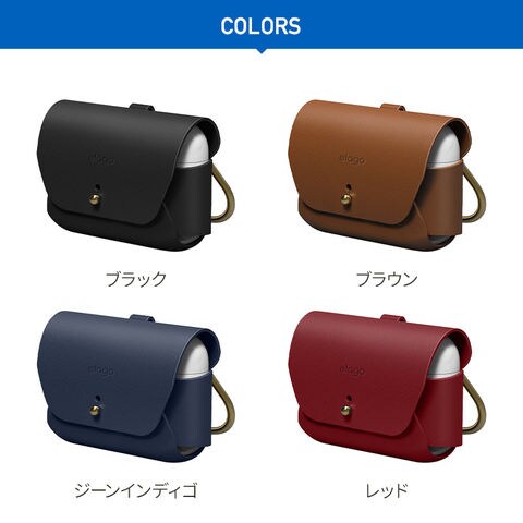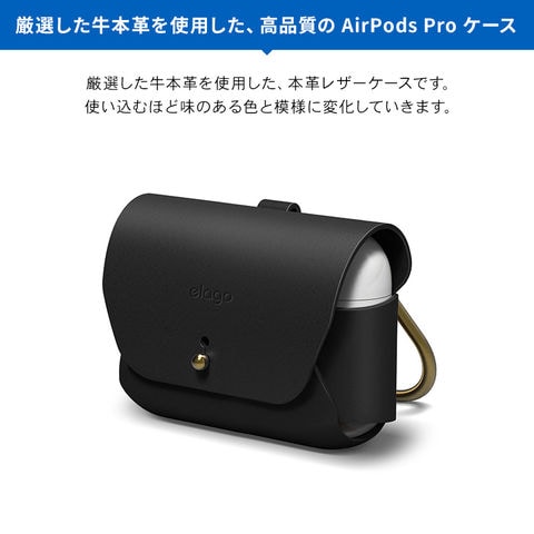 AirPods Pro ケース 本革 レザー カラビナ 付き 一枚 革 カバー 落下防止 保護 アクセサリー Apple AirPodsPro MWP22J/A エアーポッズプロ elago LEATHER CASE