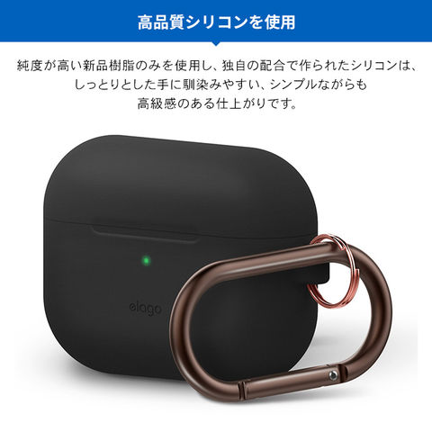 AirPods Pro ケース カラビナ 付 耐衝撃 シリコン カバー 衝撃 吸収 ソフト ケースカバー Apple AirPodsPro MWP22J/A エアーポッズプロ elago ORIGINAL HANG