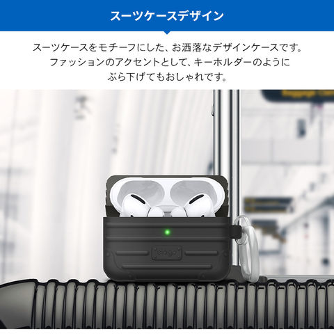 AirPods Pro ケース おしゃれ デザイン 韓国 ブランド カラビナ 付 シリコン カバー アクセサリー AirPodsPro MWP22J/A エアーポッズプロ elago SUIT CASE