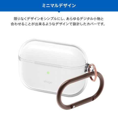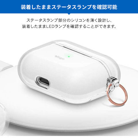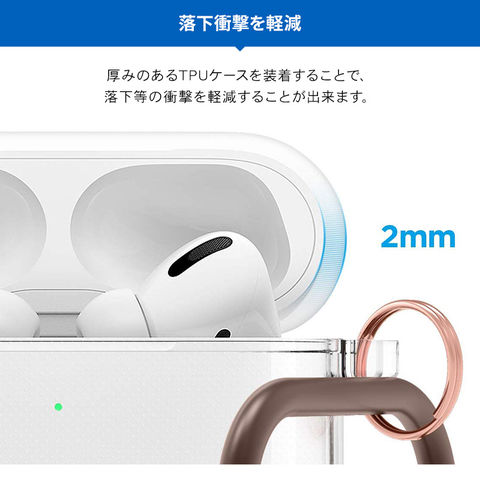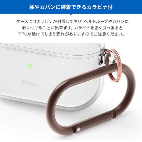 AirPods Pro ケース クリア カラビナ 付 耐衝撃 TPU 透明 カバー 衝撃 吸収 ソフト ケースカバー Apple AirPodsPro MWP22J/A エアーポッズプロ elago CLEAR CASE