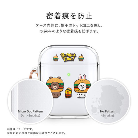 AirPods Pro ケース ラインフレンズ 公式 ライセンス 透明 カバー カラビナ 付 LINEフレンズ クリアケース エアーポッズプロ elago LINE FRIENDS BURGER TIME