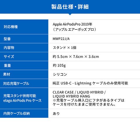 AirPods Pro2 AirPodsPro 充電 スタンド 充電ドック 純正 USB-C - Lightning ケーブル のみ対応 エアポッツプロ 2 エアーポッズプロ elago CHARGING STATION