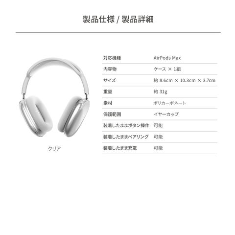 AirPods Max ケース クリア 保護 カバー 衝撃 吸収 ヘッドホンカバー Apple AirPodsMax アップル エアーポッズマックス MGYN3J/A 対応 elago CLEAR CASEのレビュー