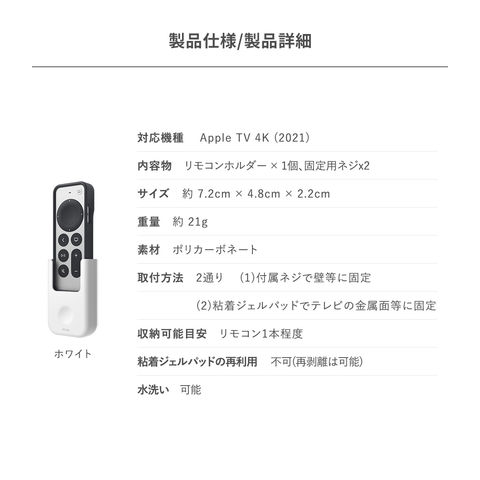 設置場所の状況に応じて、(1)付属ネジで壁等に固定(2)粘着ジェルパッドでテレビの金属面等に固定と2パターンの取り付けが可能です。