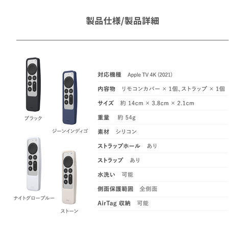 Apple TV 4K 2022 / AppleTV 4K 2021 対応 リモコン ケース AirTag 収納 可能 Siri Remote コントローラー 用 シリコン ケース ストラップ 付 elago R5 CASE