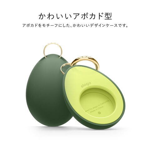 AirTag ケース かわいい アボカド シリコン 製 薄型 傷防止 保護 キーホルダー カバー Apple Air Tag 2021 エアータグ エアタグ elago AVOCADO CASE