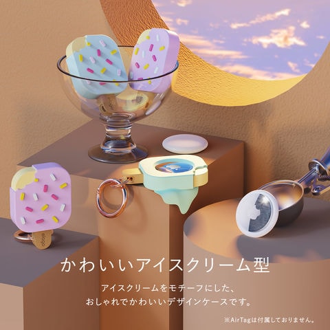 AirTag ケース おしゃれ かわいい デザイン カバー 落下防止 カラビナ 付 シリコン ケースカバー Apple Air Tag 2021 エアータグ エアタグ elago ICE CREAM