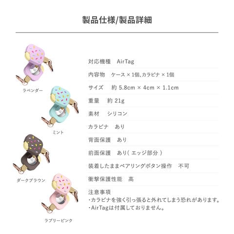 AirTag ケース おしゃれ かわいい デザイン カバー 落下防止 カラビナ 付 シリコン ケースカバー Apple Air Tag 2021 エアータグ エアタグ elago ICE CREAMのレビュー
