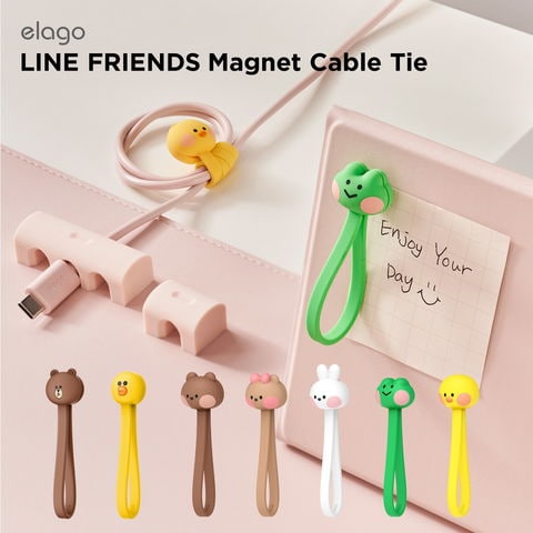 ケーブルバンド 3本入 ラインフレンズ 公式ライセンス シリコン 強力 マグネット ケーブル結束バンド 対応 elago LINE FRIENDS Magnet Cable Tie