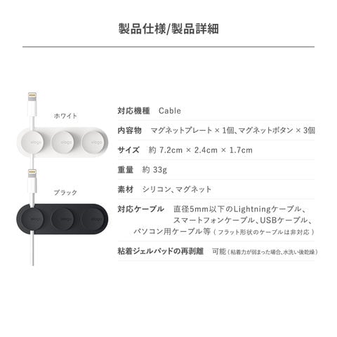 ケーブル 収納 ケーブルクリップ マグネット 付 ケーブルホルダー 小型 ケーブルオーガナイザー 充電ケーブル 対応 elago MAGNETIC CABLE MANAGEMNET BUTTONS