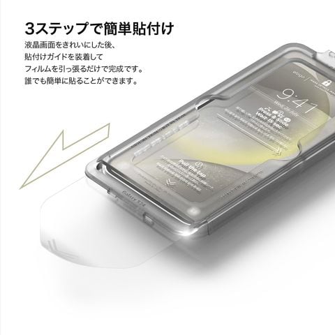 Galaxy S24 ガラスフィルム 簡単 3ステップ ガイド 指紋 防止 9H ガラス Samsung GalaxyS24 サムスン ギャラクシー S24 対応 elago TEMPERED GLASS PROTECTOR