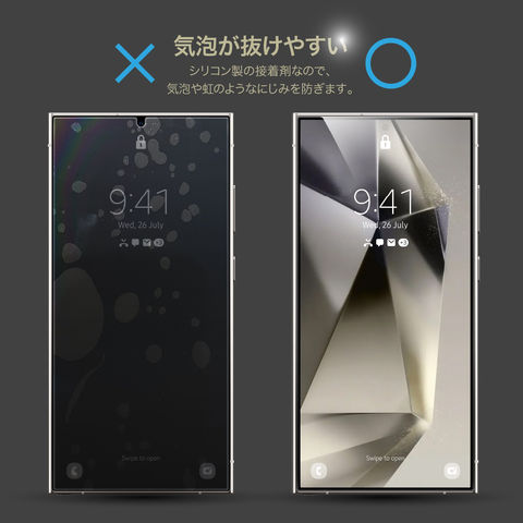 シリコン製の接着剤なので、気泡や虹のようなにじみを防ぎます。