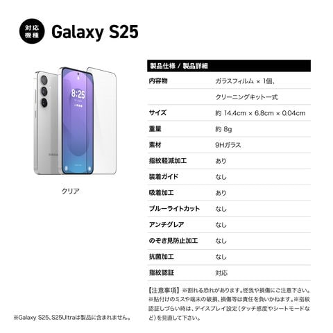 Galaxy S25 フィルム 気泡防止 9H ガラスフィルム 指紋認証対応 保護フィルム GalaxyS25 サムスン ギャラクシーS25 SC-51F 対応 elago TEMPERED GLASS PROTECTOR