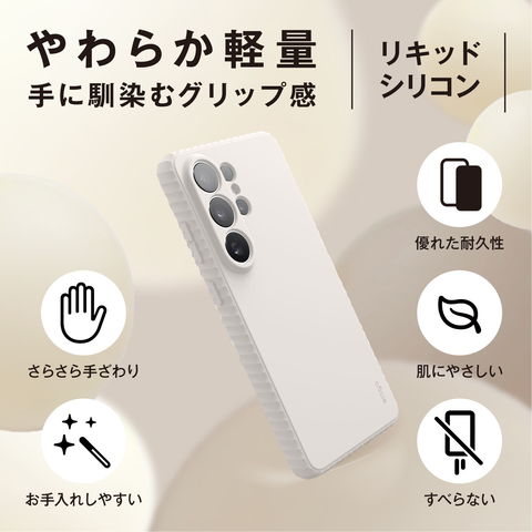 耐久性の高いリキッドシリコンに、傷・汚れが付きにくい表面加工をプラス。さらっと気持ちいい手触りで、見た目も上質感が続きます。