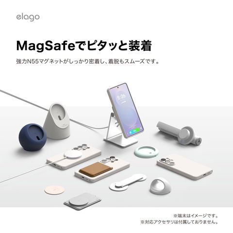 マグネット対応の充電器・アクセサリにしっかり装着。規格に準じたワイヤレス充電がスムーズに行えます。
