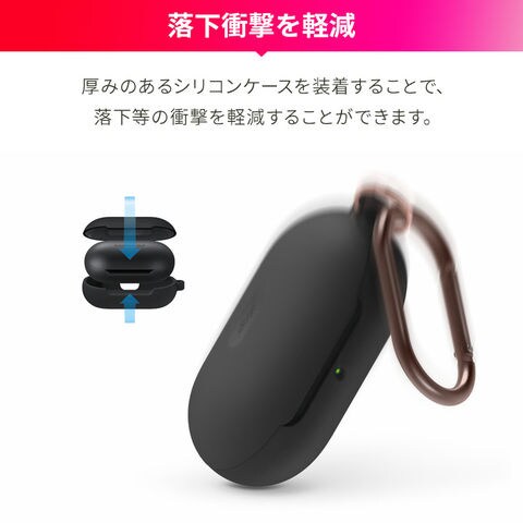 Galaxy Buds ケース カラビナ リング 付 耐衝撃 シンプル シリコン カバー 衝撃 吸収 紛失防止 アクセサリー ギャラクシーバッズ elago SILICONE HANG CASE