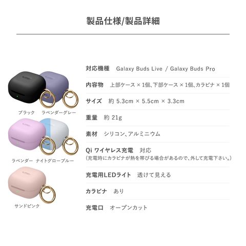 Galaxy Buds FE / Live / Pro / Buds2 / Buds2 Pro ケース シリコン カラビナ 付き 耐衝撃 衝撃 吸収 カバー 落下防止 対応 elago HANG CASE