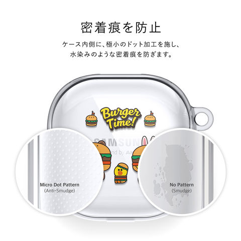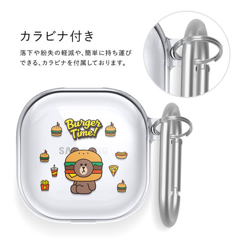 Galaxy Buds 2 Buds Live Buds Pro ケース カラビナ 付 ラインフレンズ 公式 透明 カバー ギャラクシー バッズ 2 ライブ プロ elago LINE FRIENDS BURGER TIME
