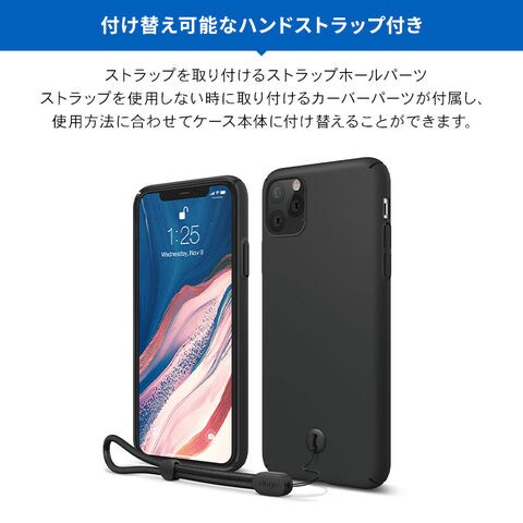 iPhone 11 Pro Max ケース 薄型 ストラップ付 カバー シンプル ポリカーボネイト スリム スマホケース アイフォン11プロマックス elago SLIMFIT STRAP CASE