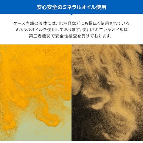 ケースに閉じ込めた発色の良いネオンサンドとオイルが流れることで色々なグラデーションを楽しめるケースです。粒子は暗闇で光りさらにバリエーション豊かに楽しめます。