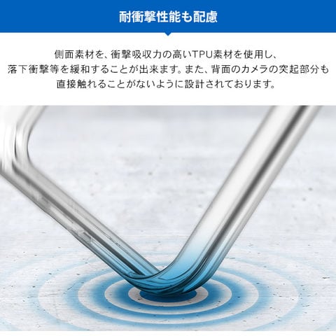 耐衝撃性に優れているTPU素材を、本製品のバンパー部分(側面)に採用し、衝撃に強くなっています。