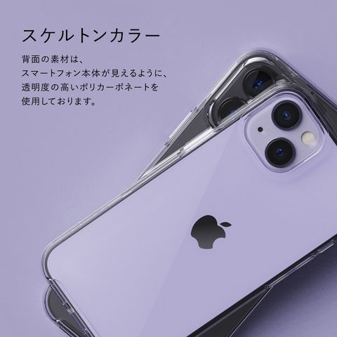 ケース背面は透過率の高いポリカーボネートを使用し、スマートフォン本体の外観も楽しめるケースです。