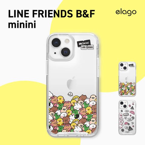 iPhone13 ケース クリア ラインフレンズ 公式 ライセンス グッズ カラビナ 付き クリアケース elago LINE FRIENDS B&F minini