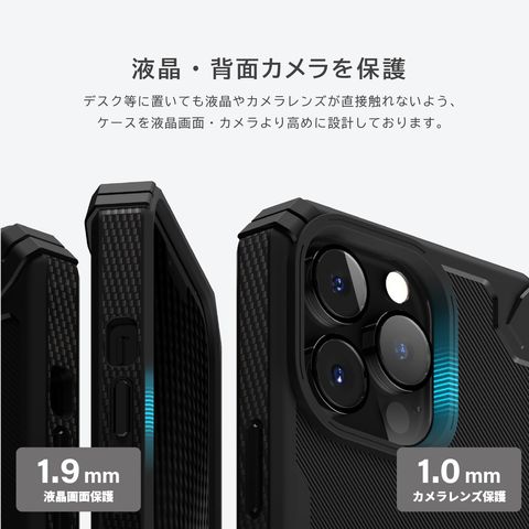 背面カメラの突起部分も直接触れることがないように設計されております。
