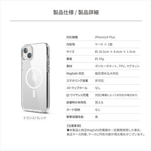 iPhone14Plus カバー ケース クリア マグセーフ 対応 マグネット 付 シンプル スマホケース iPhone14 Plus アイフォン14プラス elago MagSafe HYBRID CASE