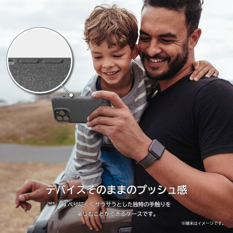 すべりにくくサラサラとした独特の手触りを楽しむことができるケースです。