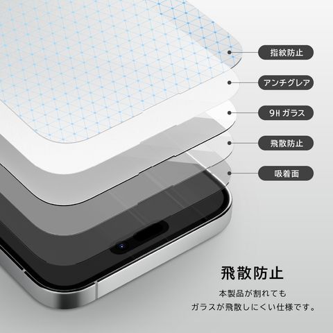 iPhone14Plus ガラスフィルム アンチグレア 9H 強化 ガラス 指紋防止 撥油 加工 飛散防止 Apple iPhone14プラス 対応 elago ANTI-FINGERPRINT TEMPERED GLASS