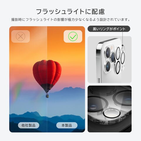 カメラレンズの形状に合わせて加工しているので、簡単に装着することが出来ます。