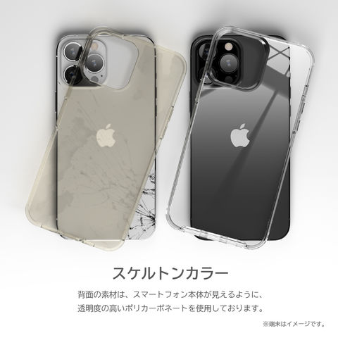 背面の素材は、スマートフォン本体が見えるように、透明度の高いポリカーボネートを使用しております。