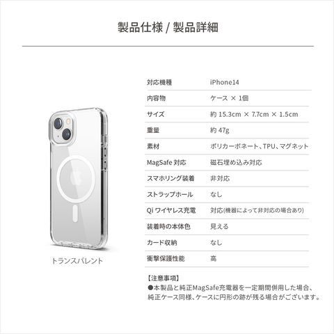 iPhone14 カバー ケース クリア マグセーフ 対応 マグネット 付 シンプル スマホケース iPhone 14 アイフォン14 elago MagSafe HYBRID CASE