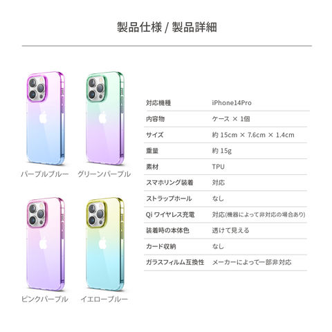 ポップなグラデーションカラーの、シンプルで使いやすいケースです。