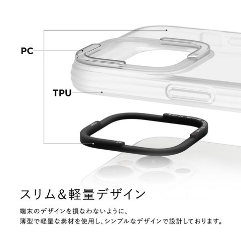 端末のデザインを損なわないように、薄型で軽量な素材を使用し、シンプルなデザインで設計しております。