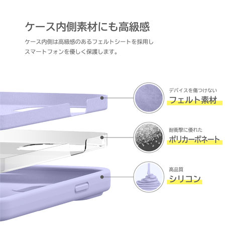 ケース内側は高級感のあるフェルトシートを採用し、スマートフォンを優しく保護します。