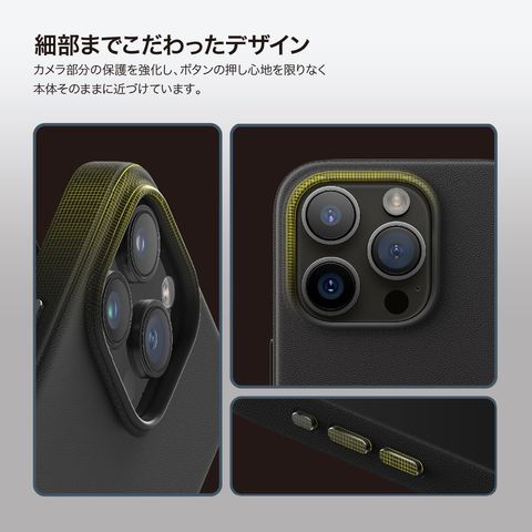 カメラ部分の保護を強化し、ボタンの押し心地を限りなく本体そのままに近づけています。