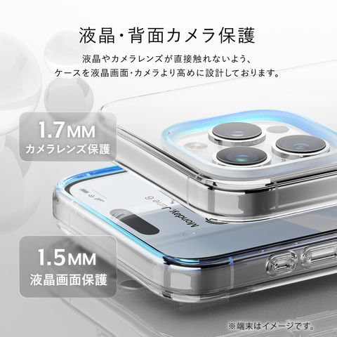液晶やカメラレンズが直接触れないよう、ケースを液晶画面・カメラより高めに設計しております。